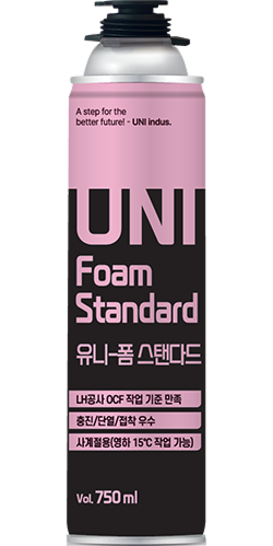 UNI-Foam Standard is a single-component polyurethane foam with high efficiency that can foam up to 55L, and is a product that satisfies KS M 3809 (density, thermal conductivity, combustibility, etc.) and the standard specifications for foamed polyurethane