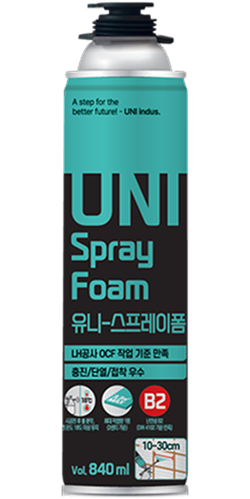 UNI-Spray Foam is a spray-type product that can be applied to large areas such as walls. It satisfies KS M 3809 (density, thermal conductivity, combustibility, etc.) and the standard specifications for LH-filled polyurethane foam. It is a product that can