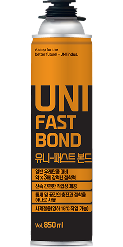 UNI-FAST BOND 는 일액형 폴리우레탄폼 타입의 본드로써 최대 60L 발포 가능한 고효율의 성능을 가지며, KS M 3705(압축전단접착강도) 및 LH 충진용 발포우레탄폼 표준시방 기준을 동시에 만족하는 제품입니다.